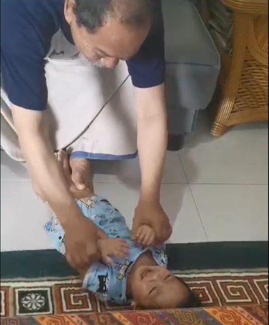 Nadhira bersama kakek selalu menghitung setiap ayunan kaki dengan teliti. Setiap kali hitungan sepuluh tercapai, kamu akan melepaskan peganganmu dan kakek menjatuhkan badanmu ke lantai. Kamu sangat riang berguling-guling sementara kakek Abah Razak menggoda dengan gelitikan kecil di perutmu. Gelak tawa Nadhira yang kegelian, jernih dan meriah mengisi seluruh sudut rumah, menciptakan suasana yang penuh kebahagiaan dan kedamaian.